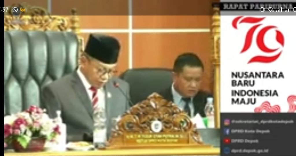 Rapat paripurna yang dipimpin ketua DPRD Kota Depok TM, Yusufsyah Putra itu, dikatakan sebagai rangkaian kegiatan dalam rangka memperingati hari ulang tahun Kemerdekaan RI ke-79, Tahun 2024, yang bertema ‘Nusantara Baru Indonesia Maju’.